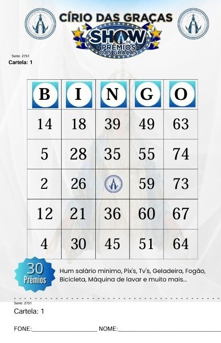 Cada cartela adquirida contribui diretamente para a realização do Círio e para as ações da paróquia, oferecendo aos participantes a oportunidade de concorrer a mais de 30 prêmios, incluindo valores em dinheiro (PIX) e diversos itens para o dia a dia.