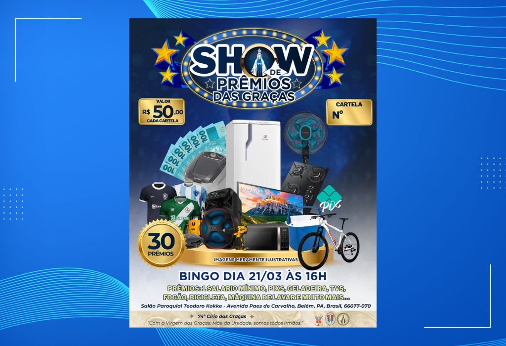 O Show de Prêmios das Graças é um bingo beneficente em prol do Círio de Nossa Senhora das Graças 2026, promovido pela Diretoria do Círio, reunindo fé, união e solidariedade em um grande evento comunitário.